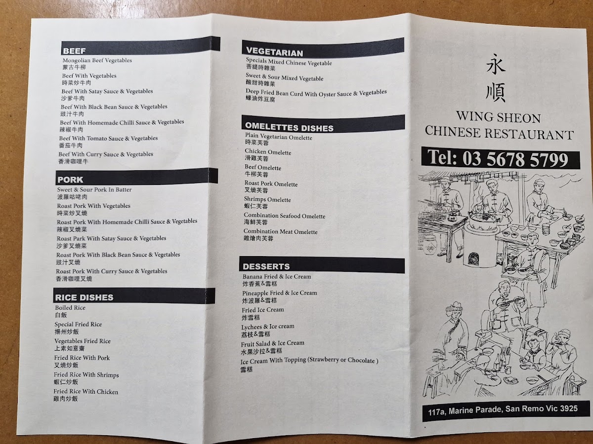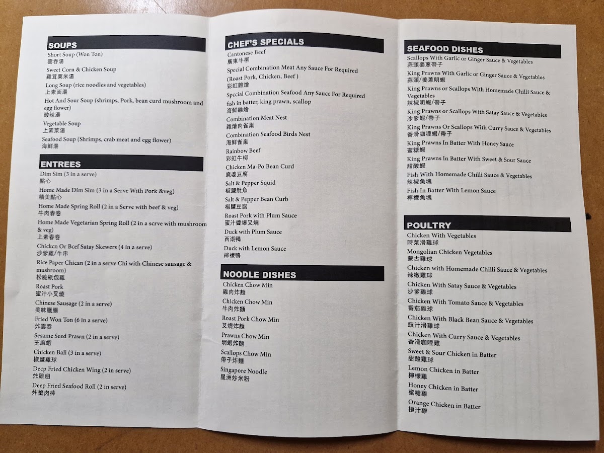 The menu highlights showcase a variety of textures and flavors, from the fragrant Special Fried Rice and tender Lemon Chicken to the vibrant Combination Meat & Vegetables in Oyster Sauce. Light bites like Chicken or Beef Satay Skewers and home-made Dim Sims are perfect for sharing or starting your meal, while noodle dishes such as Chicken Chow Mein and Singapore Noodles offer comforting options that pair well with the restaurant’s friendly, laid-back atmosphere.